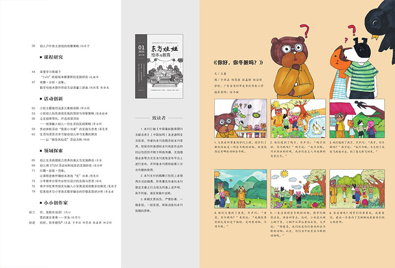 《东方娃娃绘本与教育》主要栏目:绘本美育、小小创作家、教研、课例等