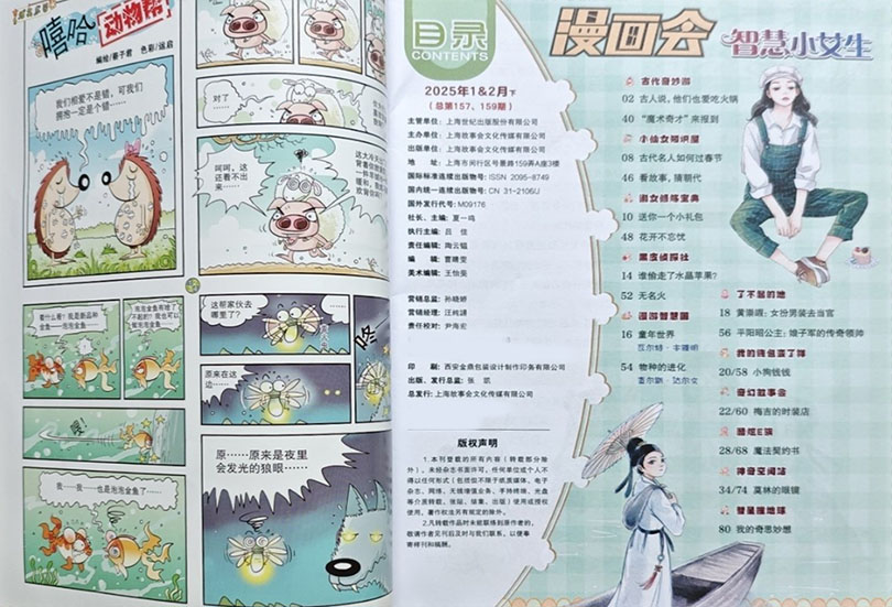《漫画会智慧小女生》(月刊)创刊于1980年,多年来杂志内容及形式方面与时俱进,并以其形式和内容的丰富性及多样性,赢得了不同阶层读者的喜爱与拥护。始终秉持着“以漫画启迪智慧,用故事陪伴成长”的核心宗旨。在四十余年的发展历程中,杂志不仅见证了数代中国儿童的成长,更以其独特的定位和丰富的内容,成为无数女孩童年时光中不可或缺的精神伙伴。其宗旨深刻体现了教育性与趣味性的完美结合,旨在通过轻松愉快的阅读体验,潜移默化地培养小读者的独立思考能力、创造力以及积极向上的价值观。