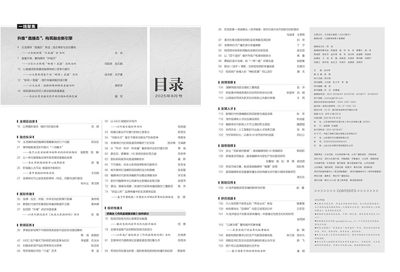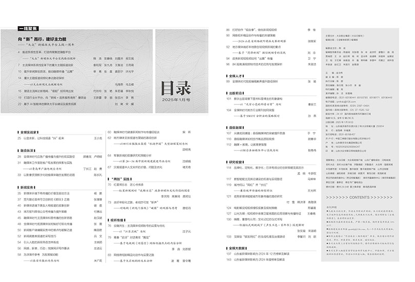 杂志注重内容的实用性,在“新闻实务”“经营管理”等栏目中,提供具体的操作指南、案例分析和管理策略,如如何打造爆款短视频、如何优化融媒体矩阵运营、如何提升用户粘性等,助力从业者提升业务能力。通过“智能应用”“融合转型”等栏目,及时报道国内外最新的技术应用和行业动态。
