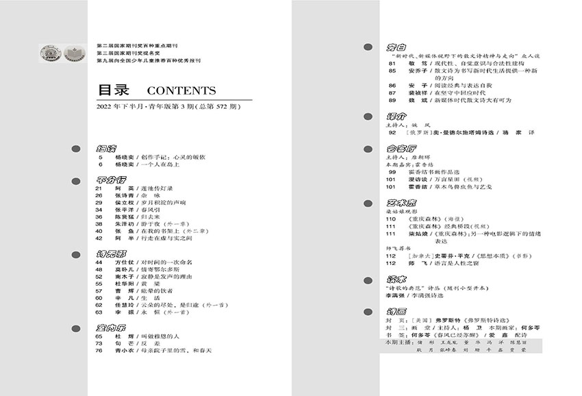 “青春书”是杂志发掘新人的重要窗口,专门刊发青年诗人、在校学生的原创散文诗作品,鼓励年轻一代以真挚的情感与独特的视角介入写作,为散文诗注入新鲜血液与活力。该栏目常配合年度“青年散文诗奖”等评选活动,形成发现、培养、推介新人的完整机制。“读本”则以专题形式策划经典重读或主题阅读,如“鲁迅散文诗研究专辑”“乡土散文诗十家”“城市书写中的诗意”等,通过系统编排引导读者深入理解散文诗的文学传统与当代发展。