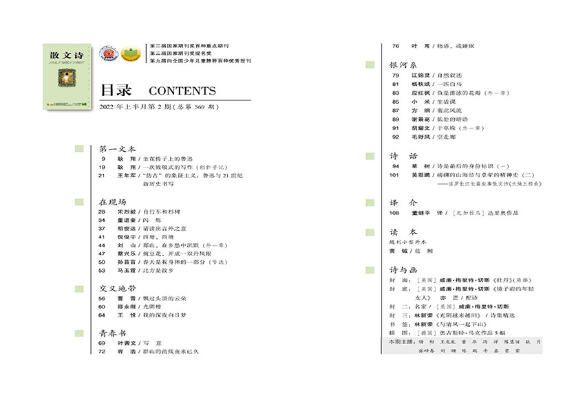 《散文诗》主要栏目:第一文本、在现场、银河系、诗话、译介、交叉地带、青春书、读本、诗与画