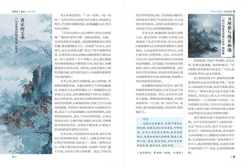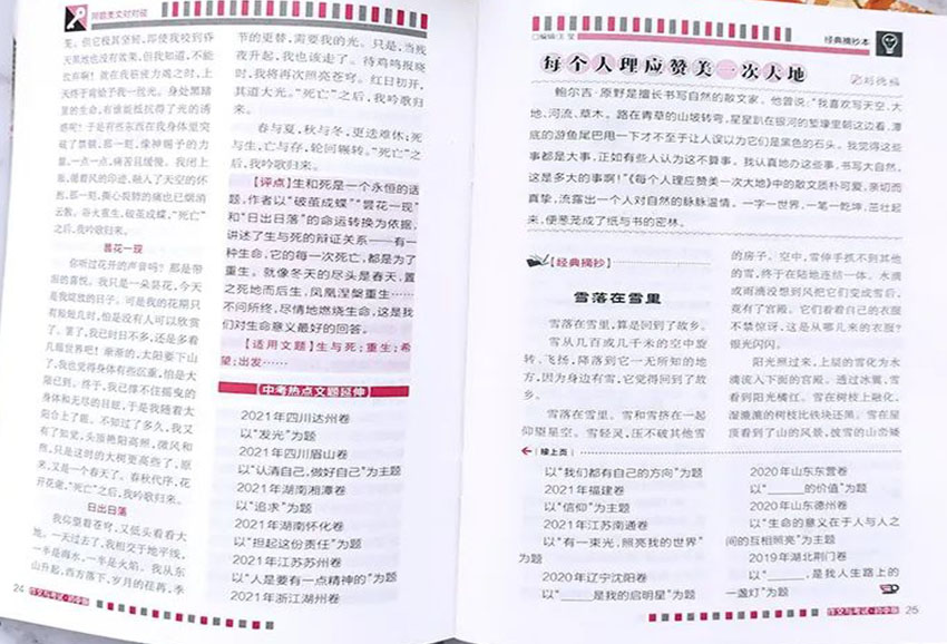 “特别策划”针对重大社会议题或文化现象进行专题解读,引导学生多角度思考,提升思辨能力;“时事热点”深入剖析年度重要事件,提供多维写作视角与素材整合方案;“经典读本”带领读者重温文学经典,解析文本内涵,打通阅读与写作的通道;“素材活用”则教会学生如何将积累的素材灵活运用于不同主题的作文中,实现从“死记硬背”到“活学活用”的转变;“校园原创作文征文”定期举办主题征文活动,为学生提供展示才华的平台,营造浓厚的写作氛围。